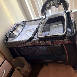 Baby Trend Deluxe II Nursery Center Portable Playard - Misty Gray: Includes Canopy, Bassinet, Vibration, Locking Wheels$135Visalia, CA