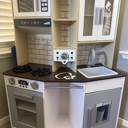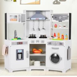 Corner Play Kitchen for Kids, Wooden Pretend Toy Kitchen, Large Toodler Cooking Playset w/Washer, Range Hood w/Light & Sound, Stove, Ice Maker, $60Hanford, CA