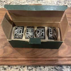 Longaberger 2001 American Holly Pewter Napkin Rings Set Of 4 Holiday Table Rings$20Fresno, CA