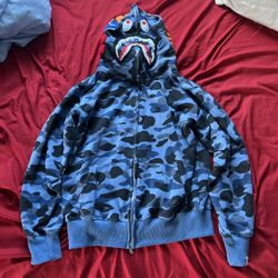 Bape Camo Shark Full Zip Double Hoodie Navy $160Fresno, CA