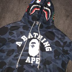 A Bathing Ape Shark Camouflage Pullover Hoodie Blue Black Men's Size L$280Fresno, CA