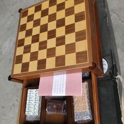 Vintage 1970s Wooden Cribbage Board w/ Storage + Dominoes & Pegs – Complete Set