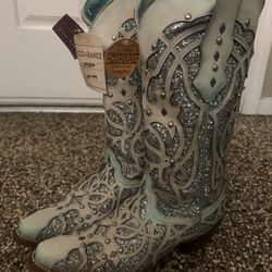 Corral Glitter Inlay Western Boots in Silver/Green. Women's Size 6 New!$200Clovis, CA