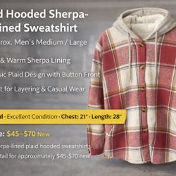 Plaid Hooded Sherpa-Lined Sweatshirt – Approx. Men’s Medium / Large $8Fresno, CA