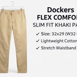Dockers Slim Fit Flex Comfort Khaki Pants Mens 32x29 Chino W32 L29$7Fresno, CA