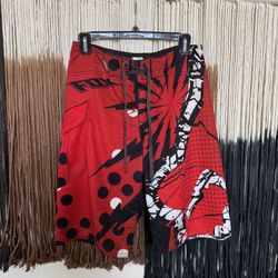 Red and black Fox Racing 9” inseam swim trunks with a cargo pocket; good condition$9Fowler, CA