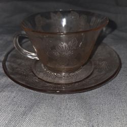 Vintage MACBETH-EVANS Pink Depression Glass Teacup & Saucer Set (1(contact info removed)) $5Fresno, CA
