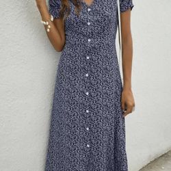SHEIN Womens Blue & White Floral Pattern Short Sleeve Button Up Midi Dress Sz. Large. Light Blue $10Visalia, CA