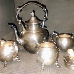 Vintage silver over copper tea kettle set $80Fresno, CA
