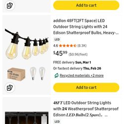 48' Strand Lights With Plastic Edison Bulbs$25Fresno, CA