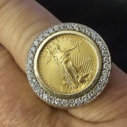1/10 ounce .999 Gold American Eagle/Liberty ring set in 16.7 gram 14K gold ring w/natural diamond bezel$2,800Clovis, CA