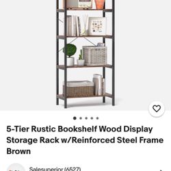 5-Tier Rustic Bookshelf Wood Display Storage Rack w/Reinforced Steel Frame Brown $45Fresno, CA