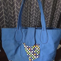 Handmade Blue Tote Bag with Polka Dot Accent Pocket$2Fresno, CA