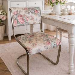 Vintage chrome metal chair upholstered pink blue flora l$90Fresno, CA