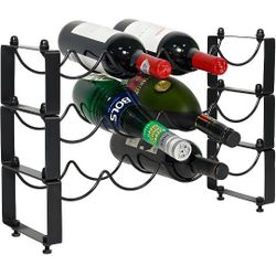 3 Tiered 12-Bottle Wine Rack - Detachable Metal Wine Glass Storage for Cabinet/Countertop, Space-Saving Black Organizer (3)