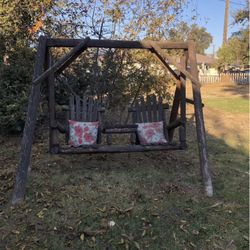 2-Person Wood Hanging Patio Porch Swing with Pine Wood Frame and Hanging Chains,$80Fresno, CA
