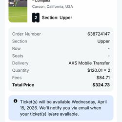 4 Lower Sideline LAFC At LA Galaxy Tickets$150Gardena, CA