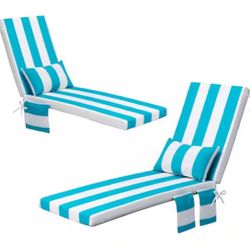 21 in. x 28 in. 2-Piece Deep Seating Outdoor Chaise Lounge Chair Cushion in Blue and White Stripe$50Chino Hills, CA