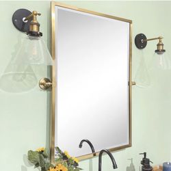 TEHOME Gold Pivot Rectangle Bathroom Vanity Mirrror Farmhouse Tiltable Rounded Metal Framed Pivoting Bathroom Mirror with Beveled Mirrror, Overall 26.$20Rancho Cucamonga, CA