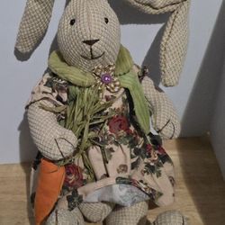 Handmade Beige Fabric Bunny Doll with Floral Dress and Green Vest$20Whittier, CA