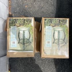New 2 Large Vintage CAST IRON Floor Standing Candle Holder w/Glass Insert $150Carson, CA