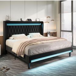 King Size Platform Bed Frame with LED Light and Charging Station, Button Tufted High Headboard, Wingback Design, Noise Free, Easy Assembly, No Box Spr$240Rancho Cucamonga, CA