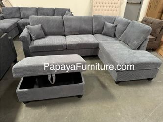NEW Dark Grey Fabric Sectional Sofa and Chaise Lounge Set with FREE STORAGE OTTOMAN Ashley Style Discount BIG Modern Couch Clearance SALE Many Colors$479Corona, CA