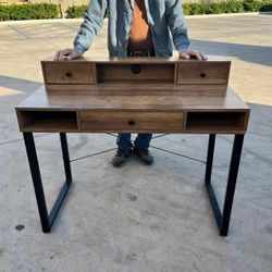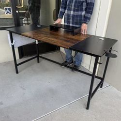 New In Box 55x24x30 Inch Talk Rustic Brown And Black Color Office Computer Desk Table With Tower Shelf $45Covina, CA