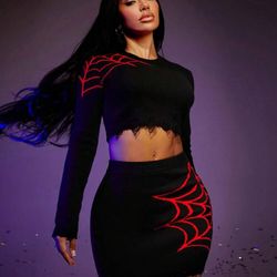 SHEIN Black Spider Web Distressed Hem Crop Top & Skirt Set Women M Halloween$15Westminster, CA
