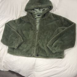 Green Faux Fur Soft Hoodie Short Waisted Free Haven Women’s Jacket Size M$25Norco, CA