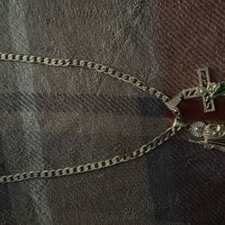 Silver skull cross and necklace$100Huntington Park, CA
