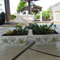 Pair Of White Flower Print Garden Pots With Succulents$10Huntington Beach, CA