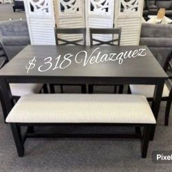 ✅️✅️6 pc Black Color dining table set padded seat chairs and bench✅️✅️✅️$318South Gate, CA