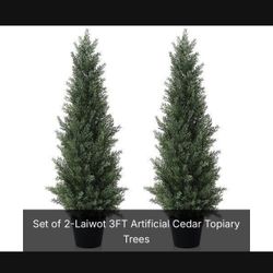 Set of 2-Laiwot 3FT Artificial Cedar Topiary Trees Outdoors Potted Fake Cypress Trees Faux Evergreen Plants for Home Porch Decor Retail $135$60La Mirada, CA
