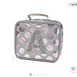 Girl's Justice Rose Gold Foil Lunch Tote Box Gray Pink Shimmer Initial A$15Ventura, CA