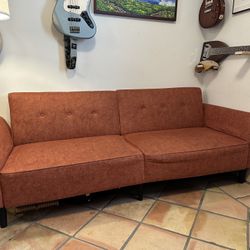 Beautiful COPIAE Futon Couch in Burnt Orange Color. *** See Description regarding Small Side Pillows. $85Santa Barbara, CA