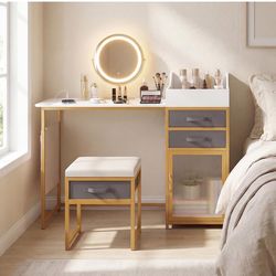 Vanity Desk with Rotatable Lighted Mirror, 55" Makeup Vanity Table with Charging Station, 3-Color Lighting & Sensor Cabinet Light, Dressing Table Set $200San Leandro, CA