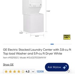 GE Electric Stacked Laundry Center with 3.8-cu ft Top load Washer and 5.9-cu ft Dryer White$500Oakland, CA