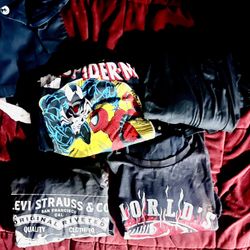 T Shirt Spider-Man 2XL, Levi’s 2XL, Fat City XL, And One Black Shirt.$10Hayward, CA