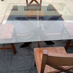 Glass dining table 5 chairs make offer$160San Jose, CA
