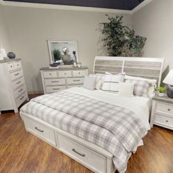 Cayboni Whitewash Queen Panel Bed, Dresser And Mirror$10 Down Payment And Financing Available$599San Jose, CA