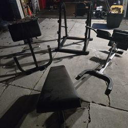 Old School Commercial grade home gym equipment. Decline bench. Barbell rack. Preacher curl. Back ext