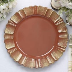 Acrylic Plastic Charger Plates 13" Round Terracotta (Rust) with Gold Brushed Wavy Scalloped Rim - Dinner Charger Tableware$2Palmdale, CA