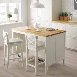 White Ikea Tornviken Kitchen Island + 2 Rosentorp Barstools$150Los Angeles, CA