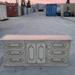 vintage French av Provincial style dresser featuring nine drawers and a white distressed finish,$200Los Angeles, CA