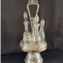 Antique Silverplate Cruet Castor Set Etched Glass Bottles 5 Piece Stand$175Los Angeles, CA