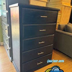 New Black Pine Wood 5 Drawer Dresser Chest With Metal Bar Handles $269Los Angeles, CA