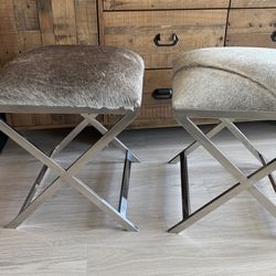 Pair of Genuine Cowhide Ottoman Stools – Chrome X-Base Legs | Brown & Gray$450Canoga Park, CA