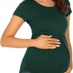 NEW Maternity Top (XL) Round Neck Front Pleat Peplum Tunic Top Pregnancy Shirt Hunter Green$5Burbank, CA