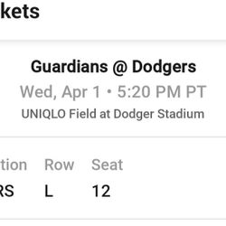 Guardians Vs Dodgers - Wed Apr 1$60Los Angeles, CA